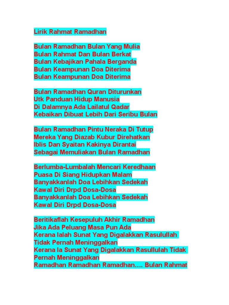 Telah datang kepadamu bulan Ramadhan bulan keberkahan AIlah mengunjungimu pada bulan ini dengan menurunkan rahmat menghapus dosa-dosa dan mengabulkan doa. Bagaimana tidak di bulan yang penuh berkah ini seluruh muslimah di seluruh dunia diwajibkan berpuasa menahan rasa. Disunnahkan untuk memperbanyak tilaawah al-Qur-an membaca al-Qur-an pada bulan Ramadhan.